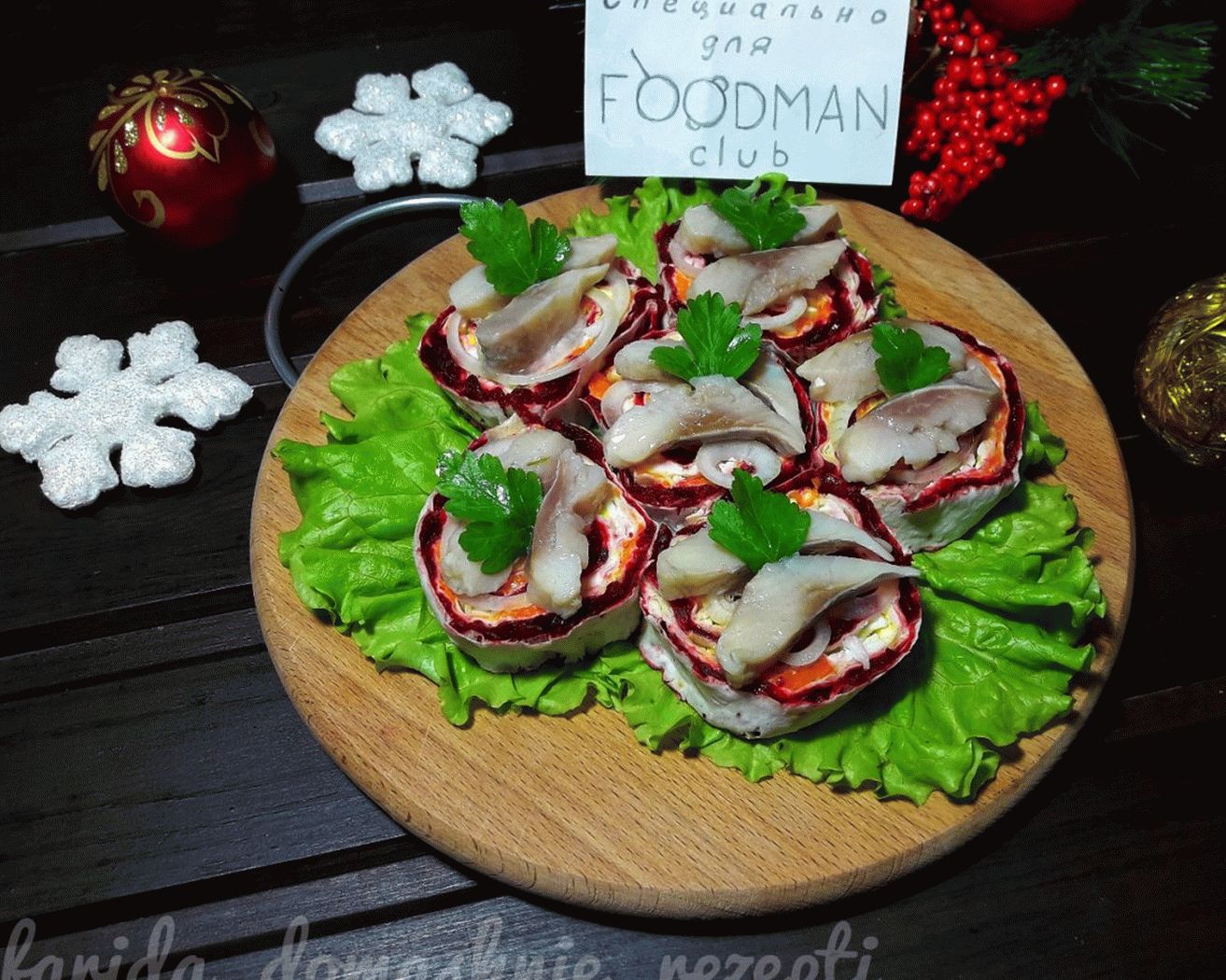 Aringhe sotto una pelliccia: un’insalata classica sul tavolo di Capodanno. Lo sono Ti suggerisco di cucinarlo a casa in modo originale, in sotto forma di rotoli di snack porzionati. Risulta lo stesso gustoso, come la solita insalata di bignè.