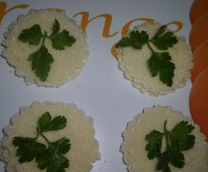 - Deponiamo le uova sulle verdure. Gli occhi sono fatti di chiodi di garofano.
