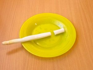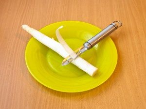- Sbucciare gli asparagi con un pelapatate (pulire in modo inappropriato quello verde).