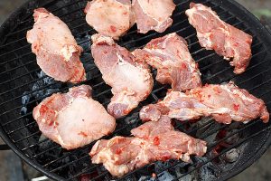 Maiale alla griglia succoso e delizioso funzionerà se affettato sottaceto di maiale in salsa di pomodoro, dolce e piccante pepe per 1 ora. La carne può essere preparata a casa in anticipo e quindi friggere in natura. Puoi farlo un giorno prima del picnic.