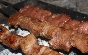 - Tagliamo la carne a cubetti della stessa dimensione, versiamo la soia salsa, olio d’oliva e narsharab. Aggiungi le spezie.