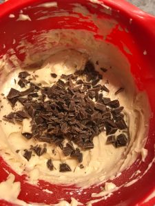 - Aggiungi qui le gocce di cioccolato e mescola delicatamente. un cucchiaio.