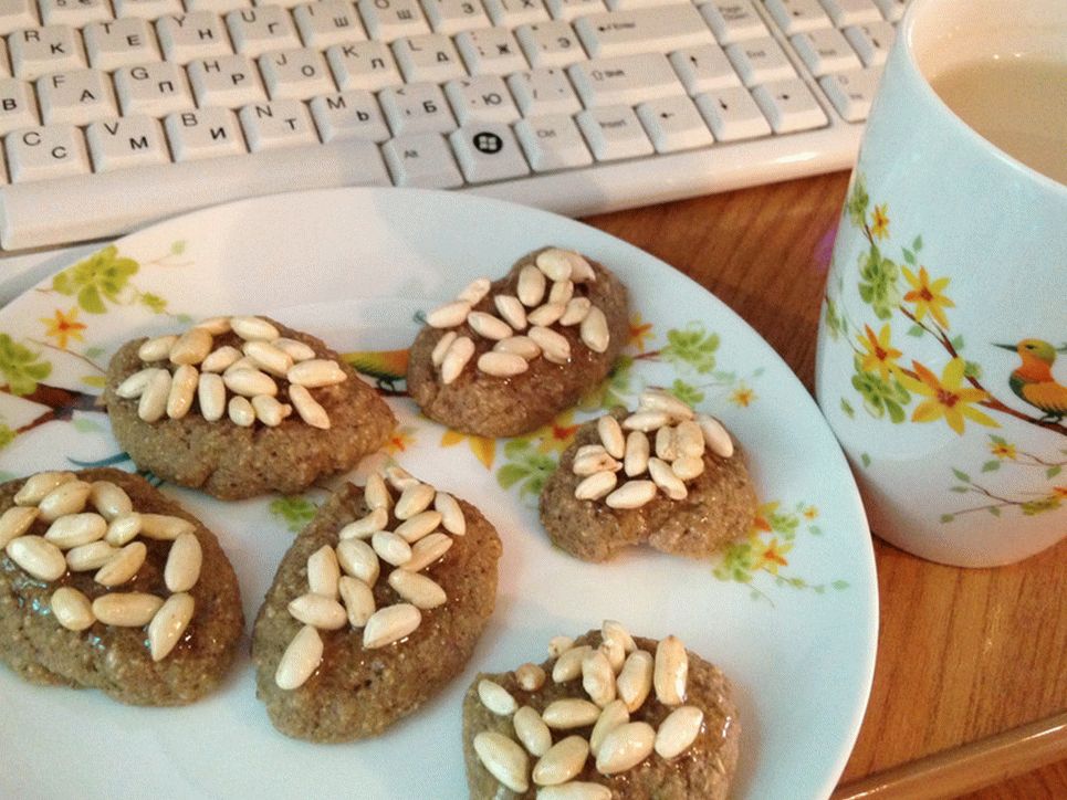 - Ungere i biscotti raffreddati con miele e cospargere con riso soffiato, entrambi i semi di sesamo.