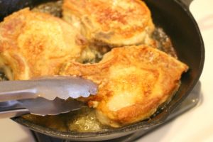 Una cotoletta disossata in una padella è una delle più facili I modi per cucinare il maiale a casa sono deliziosi. La carne con l’osso è giusta rotolare nella farina e friggere rapidamente su entrambi i lati. impanare protegge la carne dall’essiccamento e conserva i succhi all’interno.