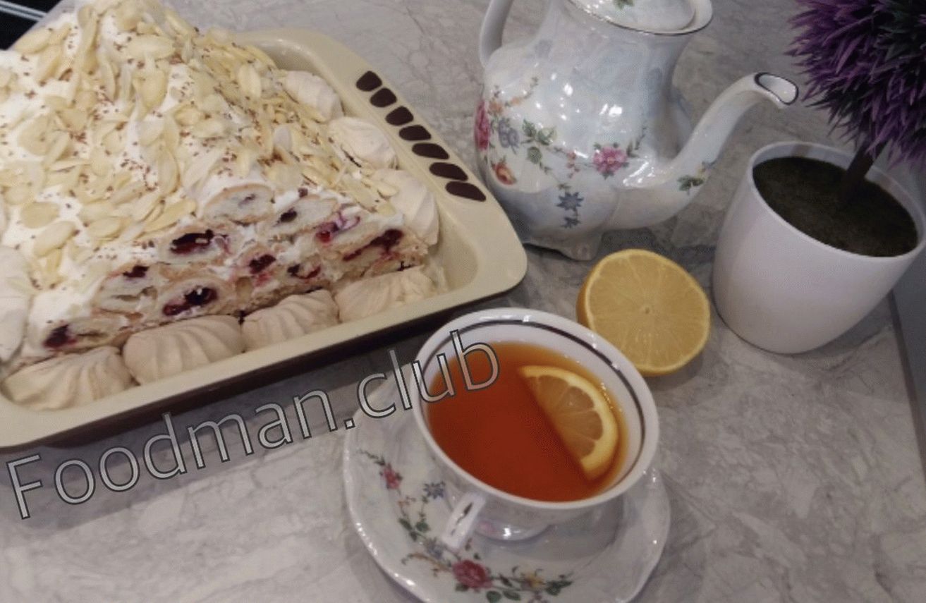 Torta saporita e insolita. Per il ripieno, ho preso i mirtilli rossi (su amatoriale). Puoi cucinare a casa con le ciliegie o altri dolci bacche.