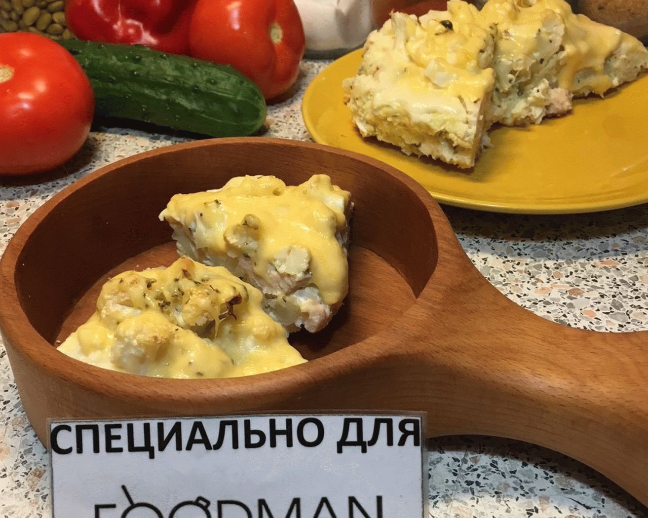 - Spalmare il pollo sul fondo, seguito dal cavolfiore, di nuovo il pollo e cavolfiore.