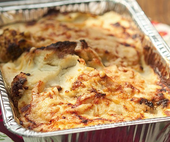 - Metti metà delle infiorescenze bollite in una teglia da forno, quindi aggiungere il cavolo fritto. Macinare la seconda met� frullatore con 70 gr. formaggio grattugiato e latte.