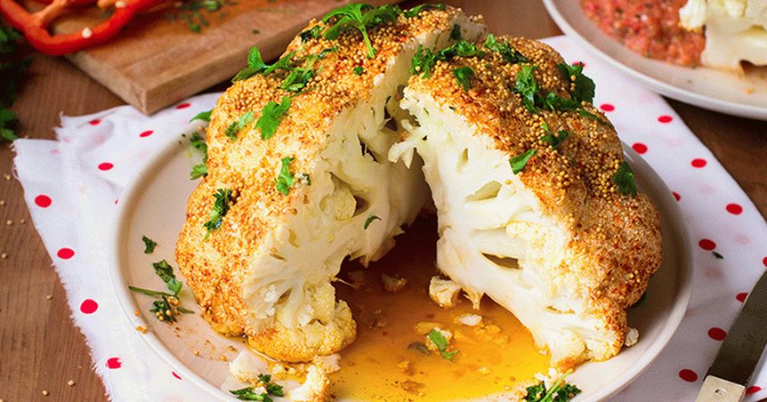 Una ricetta semplice per cucinare deliziosi cavolfiori a casa forno con salsa di spezie. Ottimo vegetariano e dieta contorno.