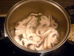 Friggere verdure e funghi in una padella con una piccola quantit� olio vegetale.