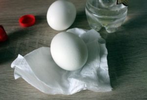 - Inumidire leggermente il panno con aceto e pulire con questo panno uova sode cotte.