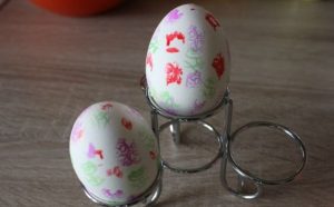 - Mettiamo le uova su un supporto e con l’aiuto di matrici per bambini colori diversi creano motivi.