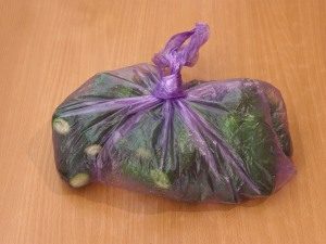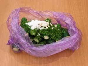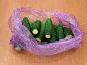 - Lavare i piccoli cetrioli, tagliare le estremità, piegare sacchetto di plastica alla rinfusa.