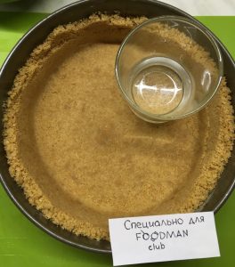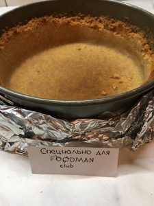- Quando la base per la cheesecake si è raffreddata, avvolgere lo stampo in un foglio in modo che in modo che l’acqua non ci arrivi (se hai una forma staccabile).