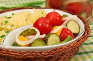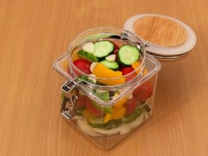 - Quindi, riempire con pomodorini, cetrioli a fette, pepe.
