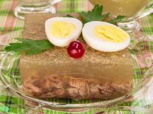 Una vera gelatina di cosce di maiale e manzo cucinerà a casa questa ricetta. La carne deve essere all’osso, per ricchezza. E un altro segreto della deliziosa carne in gelatina far bollire a fuoco basso, non è possibile versare acqua. Secondo la tradizione russa la cucina alla gelatina deve essere servita con rafano e senape.