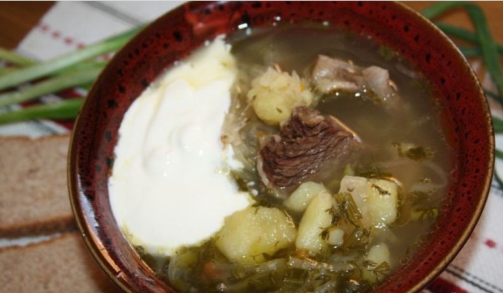 - Mettiamo anche cavolo nel brodo e verdure tritate. zuppa in generale, sono pronto, ma devo fare uno sforzo su me stesso (per non farlo mangiare in anticipo) e mettere la ghisa nel forno per 150 ° C 1,5-2 ore. Servire con panna acida.