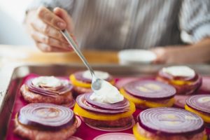- Ungere leggermente la cipolla con panna acida o maionese.
