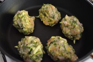 - Griglia di zucchine, aneto tritato. Mescolare con pollo tritato.