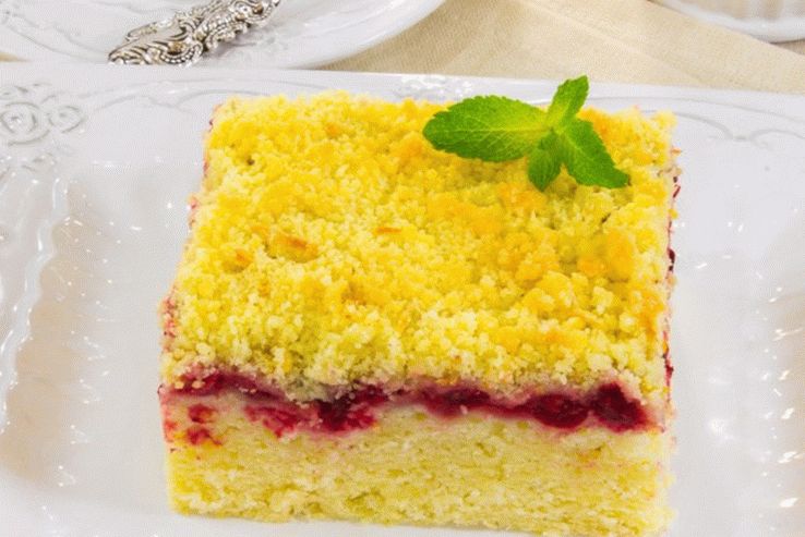 Deliziosa torta di pasta tenera con bacche acide sotto croccante Con la stessa ricetta, puoi fare una torta a casa con mirtilli rossi.