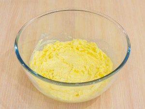 - Per l’impasto, mescola lo zucchero e il burro in una ciotola.