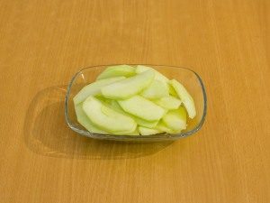 - Mele sbucciate, semi, tagliati a fettine sottili.