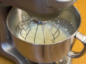 - Per la panna, montare in un mixer panna fredda con sabbia, aggiungere il latte condensato, mescolare.