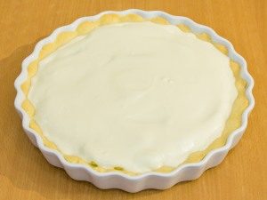 - Forma bassa con lati ricci con un diametro di 29 cm di grasso burro, mettici dentro l’impasto, disponendo i lati, rimuovilo per sette minuti in forno preriscaldato a 180 gradi.