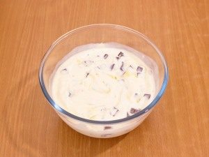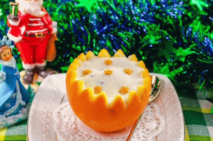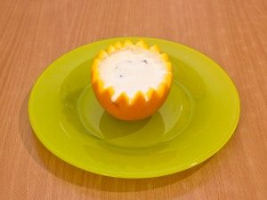 - In una ciotola, mescolare il gelato con il cioccolato e una parte del differito polpa di arancia, assicurati che i semi non ottengano.