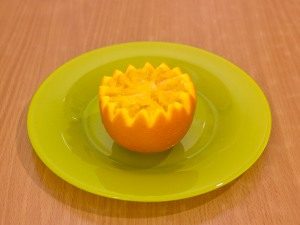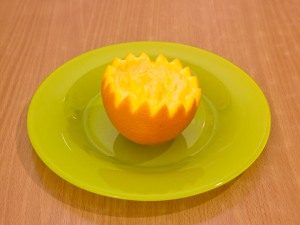 - Delicatamente, per non spezzare lo zigzag, dividi l’arancia in due parte.