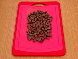 - Cioccolato amaro tritato finemente in frigorifero con un coltello.