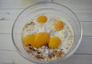 - Batti i bianchi in uno stato di schiuma forte, introduci attentamente l’impasto.