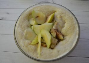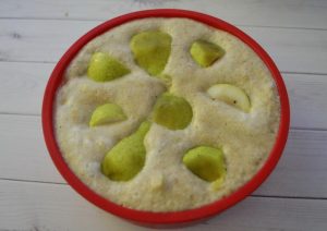 - Pera tagliata a pezzi e aggiunta all’impasto.