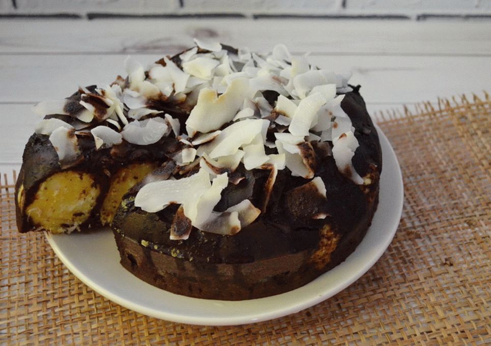 - Versare con pasta al cioccolato, infornare a 180 ° quaranta minuti.