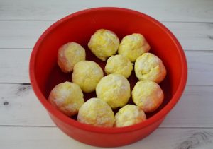 - Tiriamo piccole palline dalla massa della cagliata, la mettiamo dentro stampo in silicone.