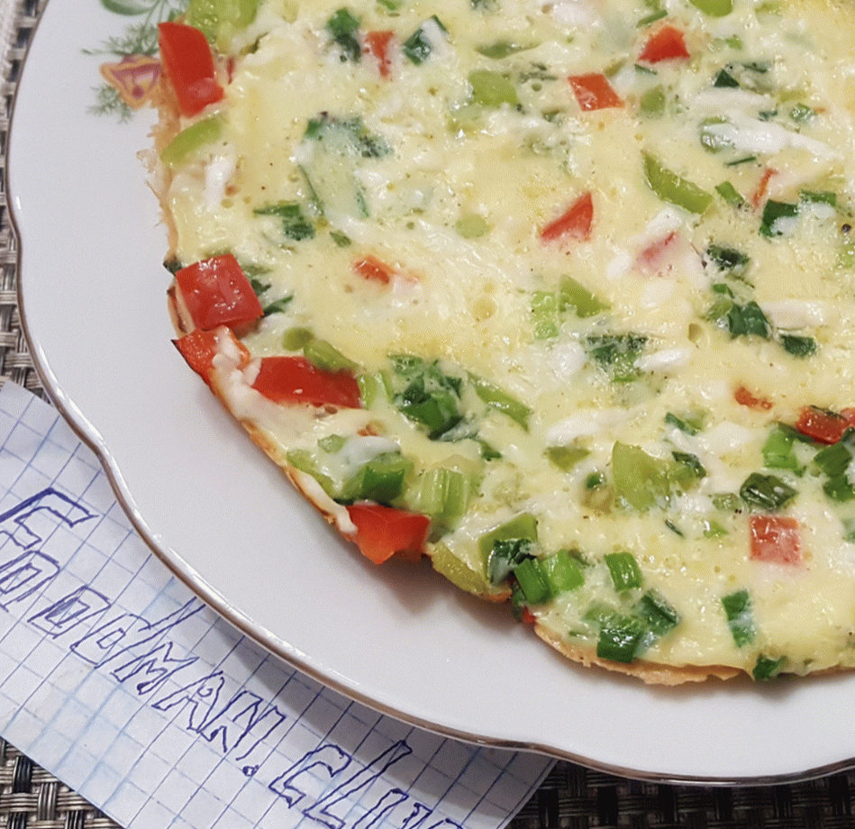 Colazione leggera e abbondante. Cucinare a casa una deliziosa frittata molto facile!