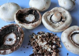 - Lavare accuratamente i funghi e tagliare le “zampe” dei funghi con un coltello. Tritare finemente le “gambe” e friggerle in olio vegetale per circa 10 minuti.