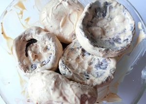 - Mescolare la panna acida e la salsa di soia. Mescola i tappi dei funghi la salsa risultante e lasciare per un’ora. Durante questo periodo dovrebbero marinato.