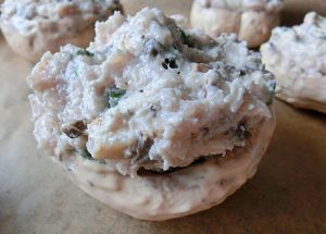 - Togliamo i tappi di funghi dalla marinata e lo riempiamo di carne macinata.