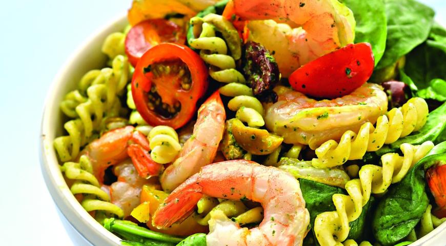 - Mescolare il pesto con 3 cucchiai di olio. Mescola tutto ingredienti per insalata, condire con pepe e sale qb, lasciare solo per un po ‘in modo che la pasta si assorba stazione di benzina.