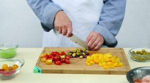 - Peperone, eliminiamo da partizioni, semi e gambo. Tagliare la polpa di pepe a cubetti.