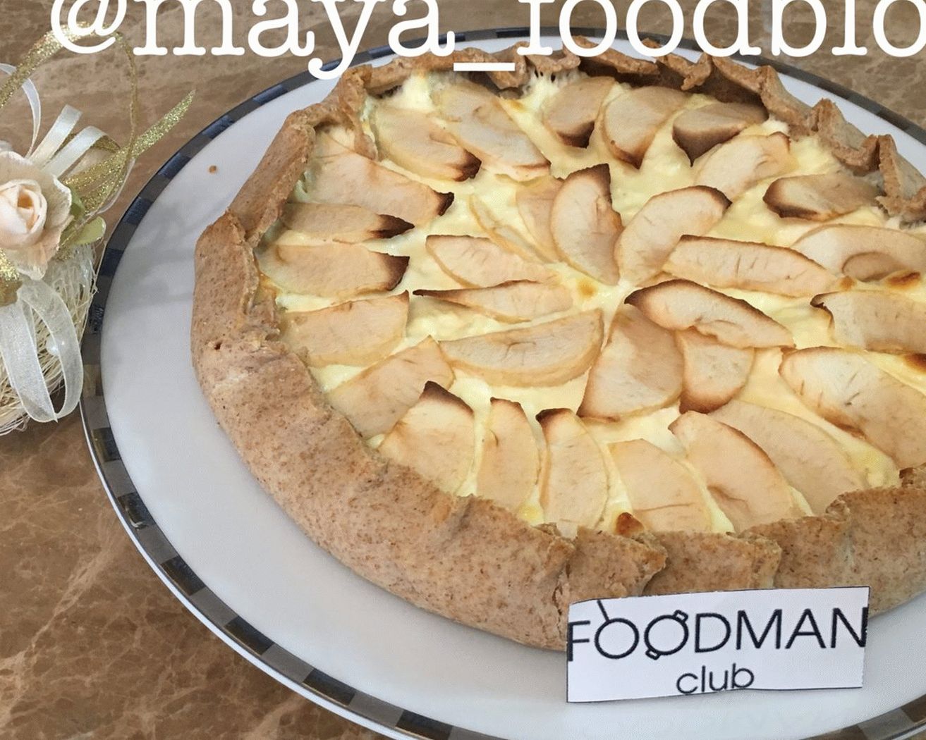 - Rotolo di pasta fredda (più facile da arrotolare sulla panetteria carta), metti il ripieno e le mele al centro, forma un biscotto.