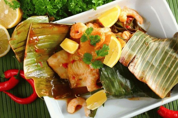 Nonostante il fatto che le foglie di banana ci sembrino incredibili esotici, in America Latina sono molto popolari e con loro Puoi preparare molti piatti deliziosi, fare una casa deliziosa il pesce con gamberi in foglie di banano è semplice, devi solo fare scorta foglie di banano.