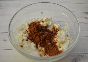 - Aggiungere la vanillina con il cacao, mescolare fino a che liscio con usando un mixer.