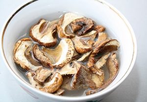 Immergi i funghi secchi in acqua fredda per tre ore. Drenare l’acqua. Aggiungerli nella padella, riempire con due bicchieri d’acqua e cuocere a fuoco lento fuoco lento 40 minuti.