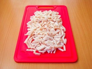 - Immergi le carcasse di calamari in acqua bollente per esattamente tre minuti. Quindi estrarre. Calamari refrigerati tagliati a cannucce.