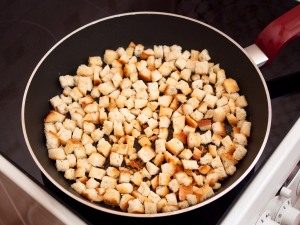 - Friggere i cubetti di pane in una piccola quantità di olio fino a quando colore dorato