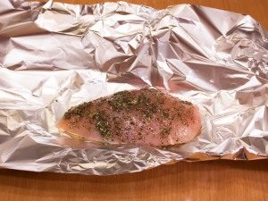 - La miscela risultante, grattugiare il filetto di pollo, avvolgerlo in un foglio.