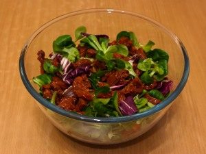 - In una ciotola volumetrica, unisci la lattuga con trito finemente pomodori secchi.