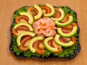 - Metti i gamberi pelati al centro del piatto, cospargi l’insalata spogliatoio.