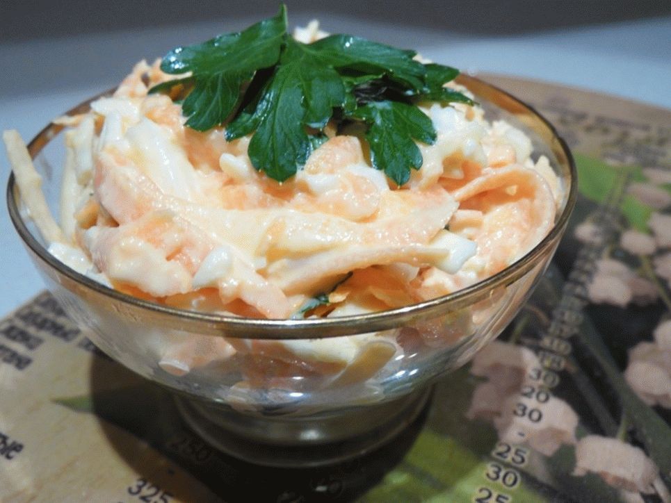 Deliziosa insalata di carote fresche con formaggio e uova Puoi cucinare facilmente a casa: è un piatto molto veloce e semplice. Consiglio di preparare questa insalata al piatto principale a pranzo o la cena.